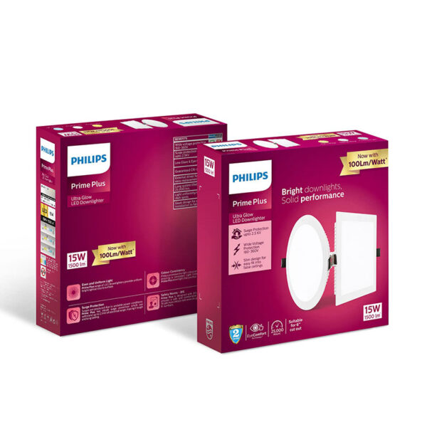 Philips Prime Plus Philips Prime Plus 15W LED Panel Ceiling Light? is a uniquely developed solution by Philips combining 3 LEDs in a synthetic and aluminium housing. This technique enables an optimal light output and a 100% uniform light colour. The LED lighting technology used in Philips lighting fixtures is highly energy-efficient. As a result, every lighting fixture conserves energy, helping consumers to save money on their electricity bills and contribute to preserving the environment.